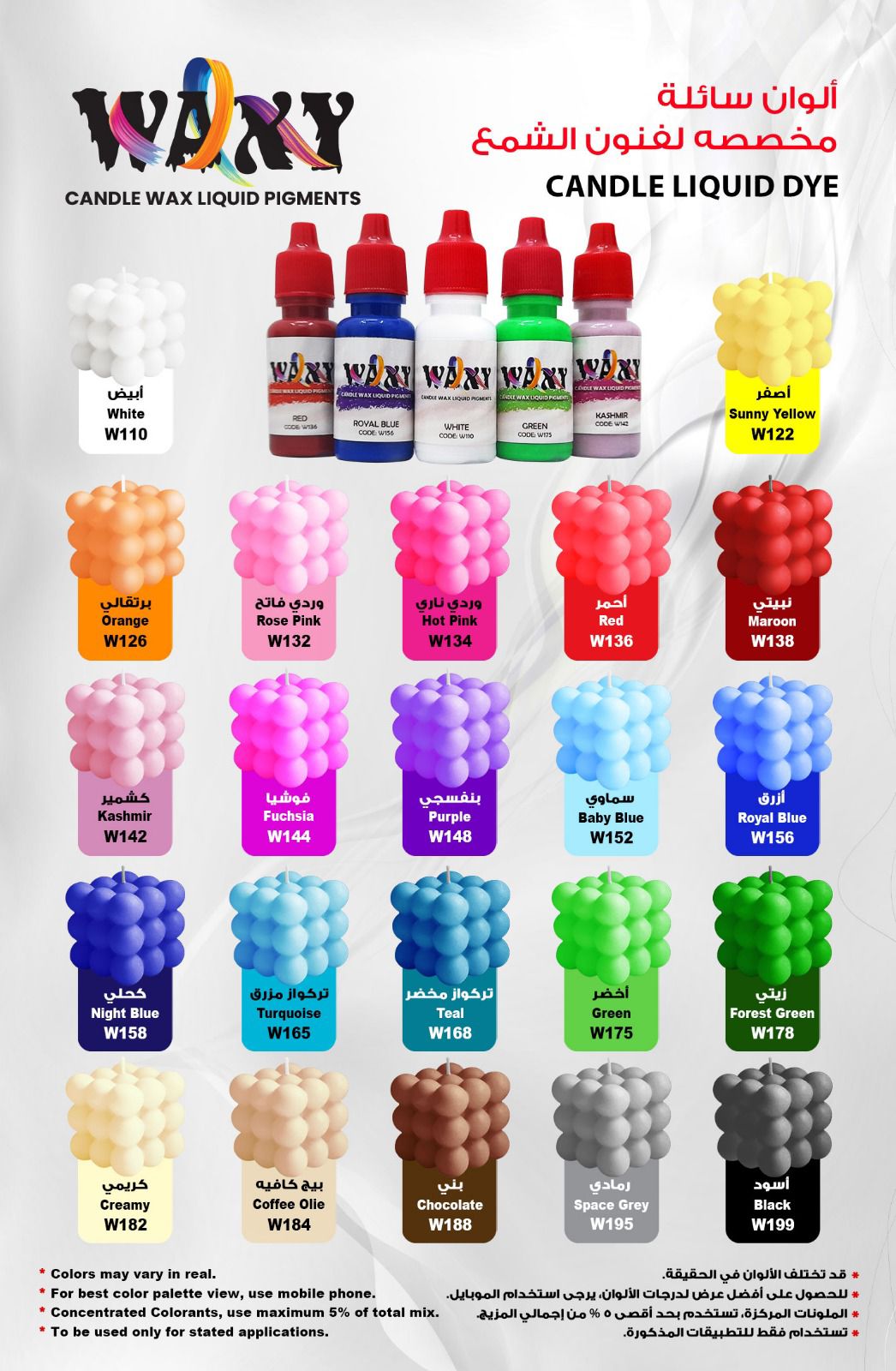 لون سائل للشموع يتم مزجه مع الشموع لاعطاء لون افضل